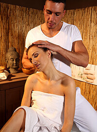 Movie description: "Brunette rides masseur's thick dick". Lara lies down on the massage table, prepared to fully relax. Fernando stretched out her taut limbs before he kneads her tired and sore muscles. When he comes to her pussy, his oiled up hands explore their folds, turning her on. Soon Lara is giving Fernando a blowjob and then the slick couple fuck on the massage table, after Fernando licks her wet pussy. Lara
